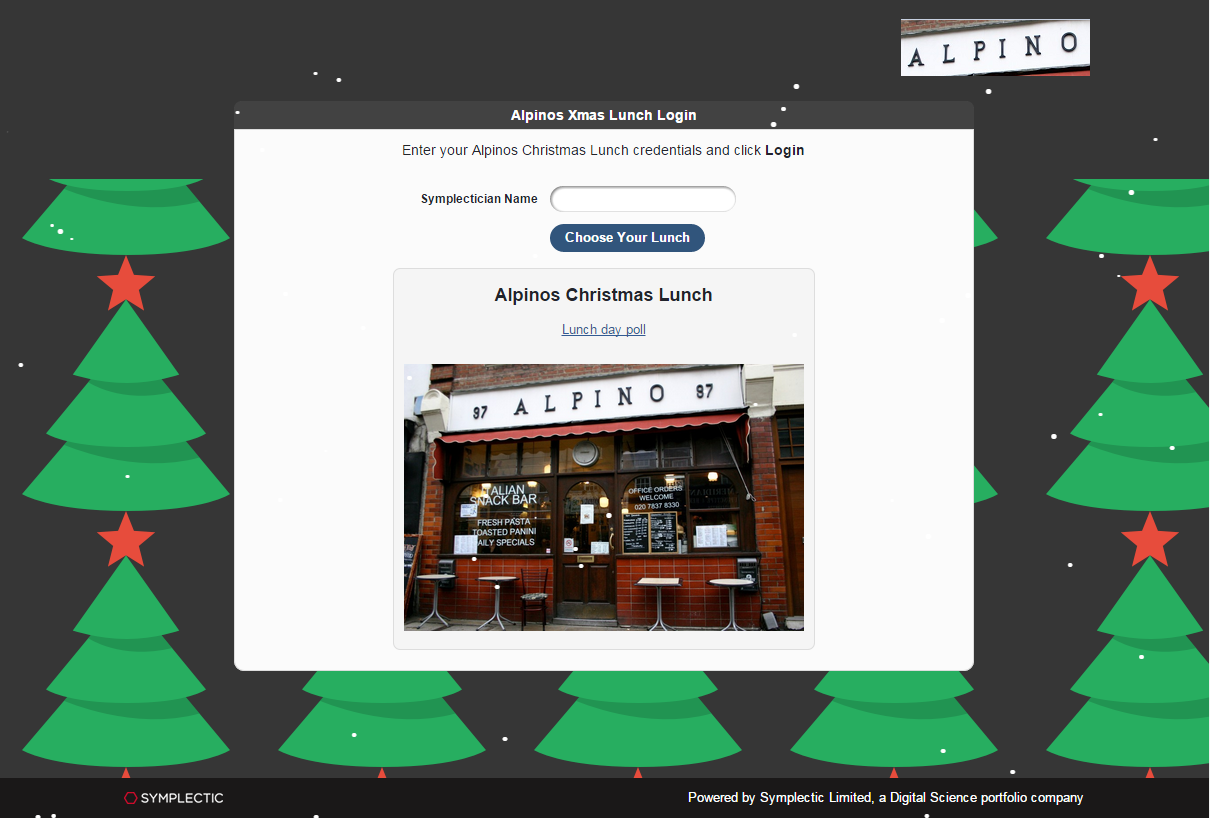 Blog It’s beginning to look a lot like Christmas… December 18, 2014 Alpino in Chapel Market, Islington, London is a small Italian cafe; it’s tasty, good value, and one of the team’s favourite Friday…