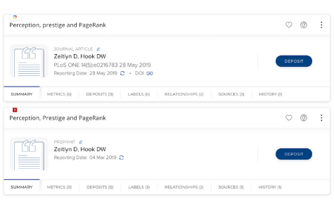 • Addition of new linking functionality to help organisations understand the relationships between preprints and later  published works.